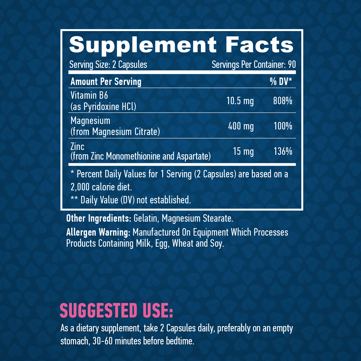 Ingredients: Zinc, Magnesium, Vitamin B6